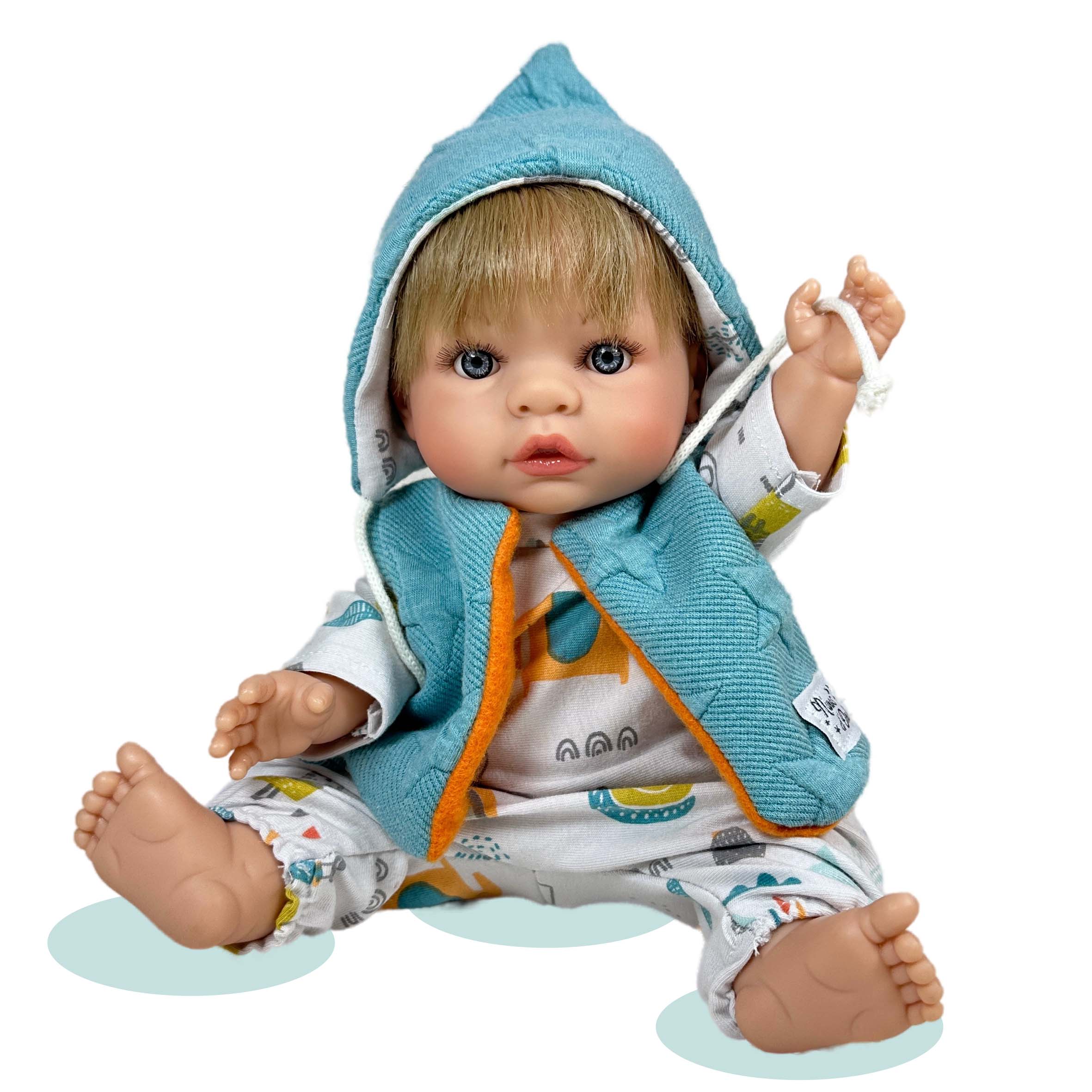 Lalka winylowa, można ją kąpać. Ma ruchome różki i rączki. Ma 37cm i pakowana jest w plecak worek.